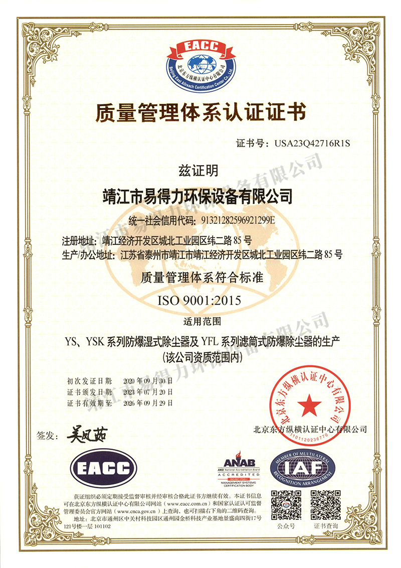 質(zhì)量管理體系認(rèn)證證書
